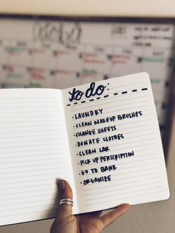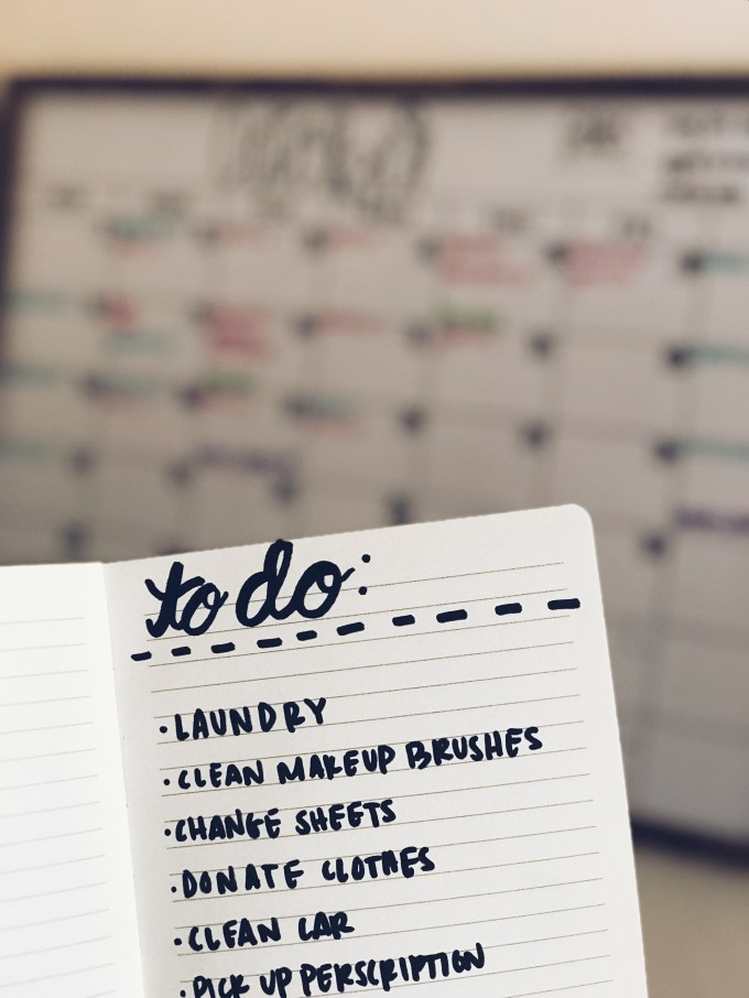 Every Monday, I like to make a to-do list that pertains to the week and the day. Like for instance, I’m probably going to go to the bank again and organize in the same week, but I’m not going to donate my clothes twice in one week. Obviously to do lists are a clear way to stay organized but it’s the simplest things that declutter my mind such as this. After getting certain things done, I feel better about the selfish things like buying something that I need/want.