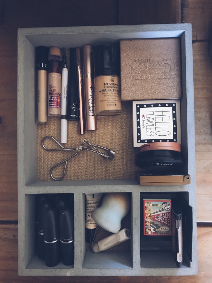 I just recently bought this organizer from TJ Maxx and it was $7. I’ve always kept my makeup in just a regular makeup bag but I hate trying to get ready and having to dig through all my crap. Also it’s a great way to see what you actually use.